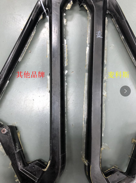 麥科斯離型劑和某品牌離型劑的離型次數(shù)相當(dāng),稀釋過(guò)后離型次數(shù)也同等,但車(chē)架成型后外觀表面比*爾的干凈許多,表面無(wú)明顯離型劑轉(zhuǎn)移,沒(méi)有油膩感。噴漆后,用麥科斯離型劑做的車(chē)架比某品牌離型劑做的車(chē)架更有視覺(jué)提升!